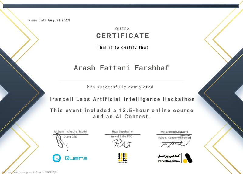 گواهی پایاندوره آرش فتانی فرشباف