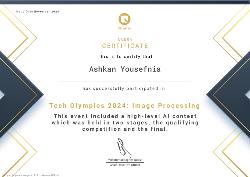 گواهی پایاندوره Ashkan Yousefnia