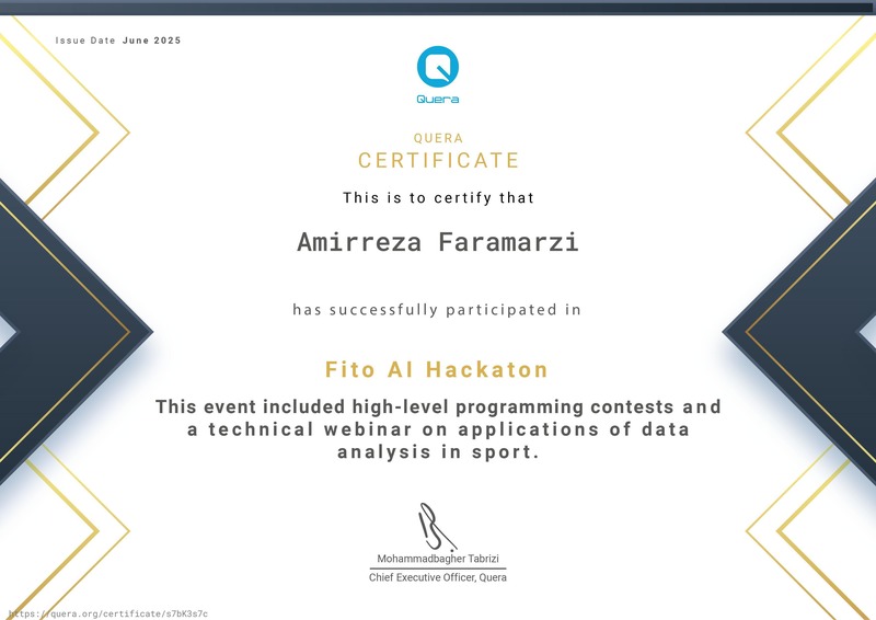 گواهی پایاندوره امیررضا فرامرزی